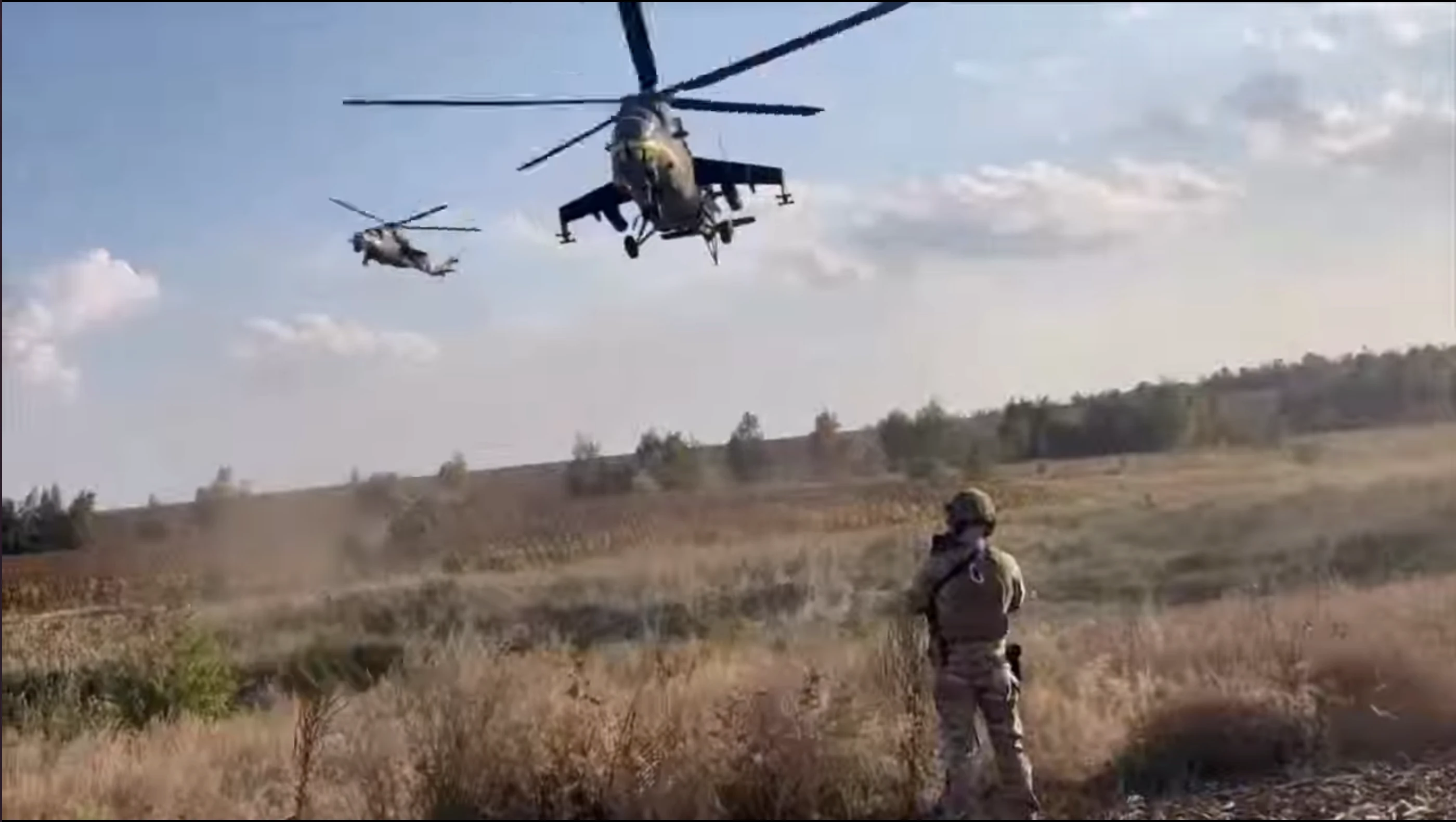 Footage's delivered by Ukrainian military showing some combat flights on Mil Mi-24 hind, lunching Javeling and drone attacks - including using drone as a bomber.