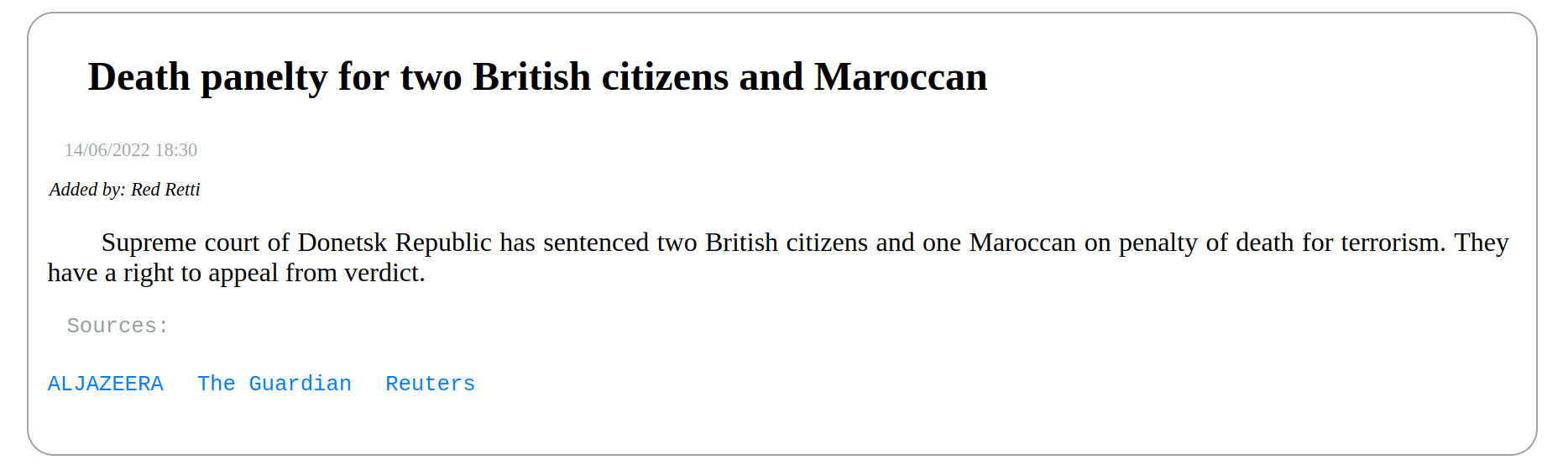 Supreme court of Donetsk Republic has sentenced two British citizens and one Maroccan on penalty of death for terrorism. They have a right to appeal from verdict.