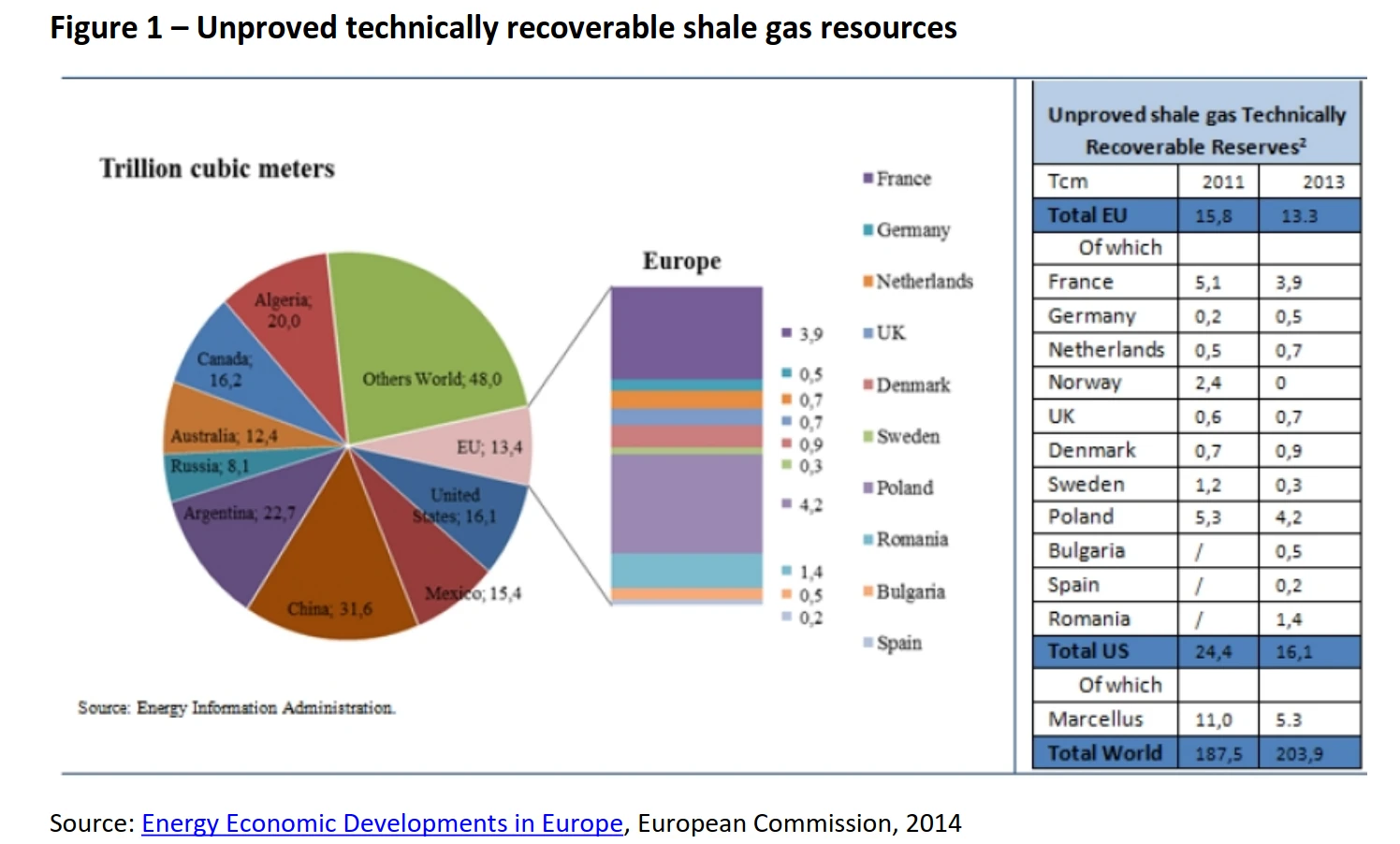 Poland have the largest estimated shale gas deposits in European Union. According to geologists calculations these are 22.45 trillion cubic meters, of which 5.30 trillion is recoverable Germans some time ago had raised discussion about possibility of Polish gas extraction.