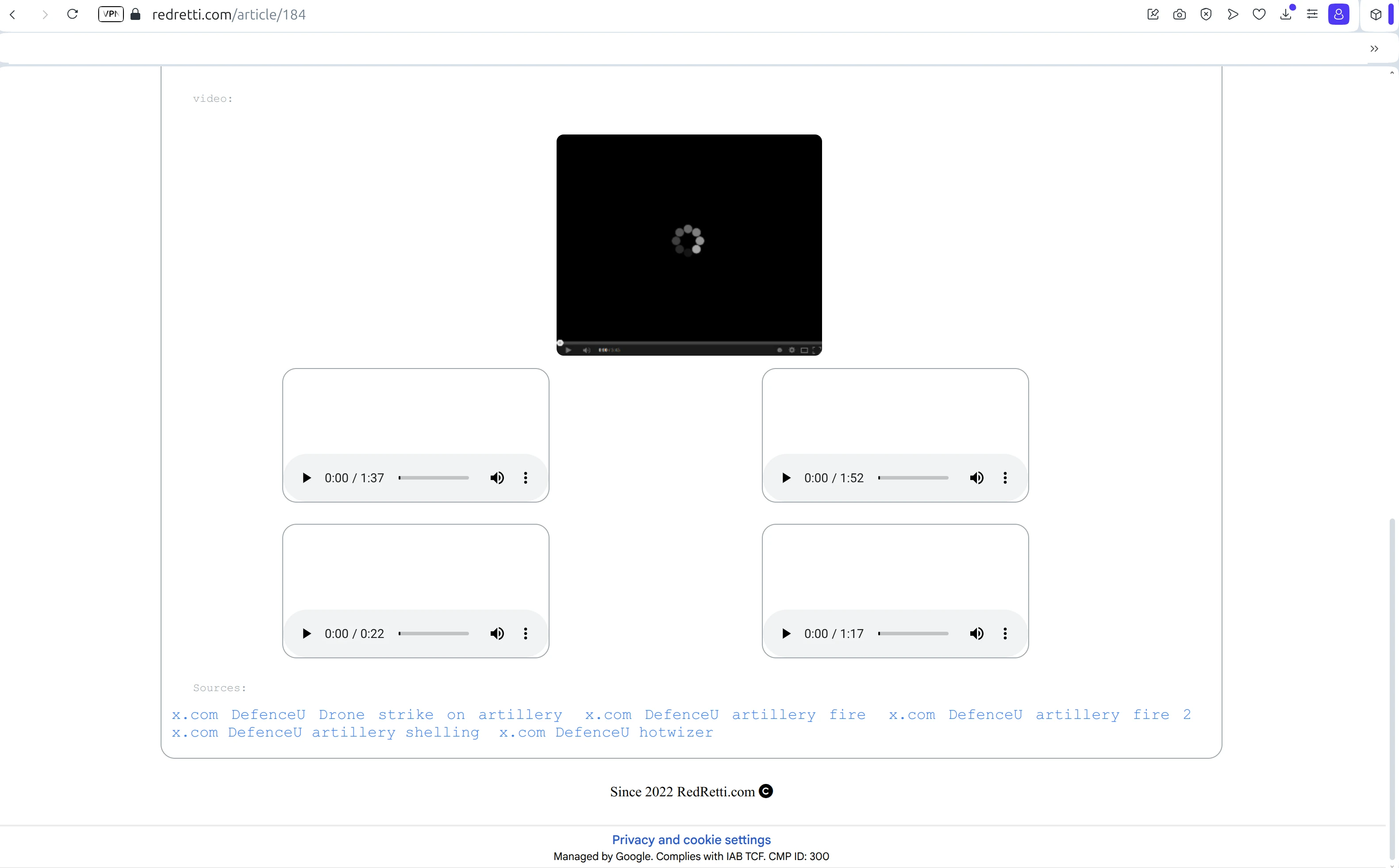 It has been detected lack of support of codec H.265 support in MP4 container which has been used for compression in recent videos. The following web browsers does not support H.265 in MP4 container: - Microsoft Edge - Google Chrome - Opera Codec H.265 support in MP4 works only so far in Firefox It is recommended for a videos to use WEBM container and VP9 codec as the most know compression effective and quality combination of container and codec. Affected articles list in sources list.
