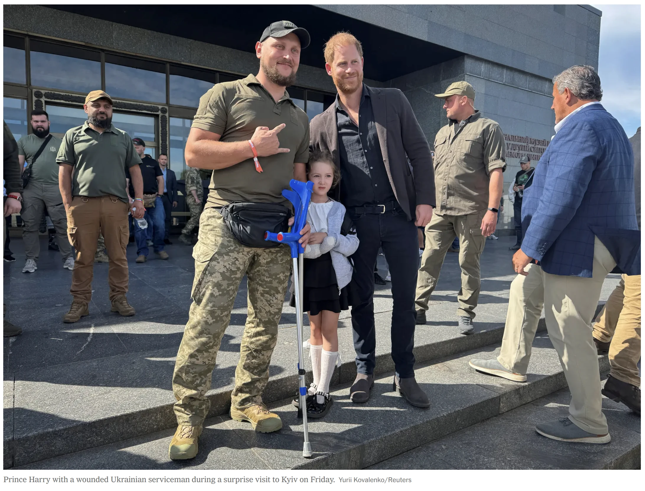 Prince Harry has arrived to Kiev on invitation of the Ukraine Government. At arrival he received a gift from Ukrainian authorities - a glass in basket. Prince Harry reason for a visit is to support wounded in the conflict. Ukraine also might be hosting in the future Invictus games - multi-sport event for wounded and sick military serviceman's. Invictus games were founded by Royal Foundation of The Duke and Duchess of Cambridge and Prince Harry.