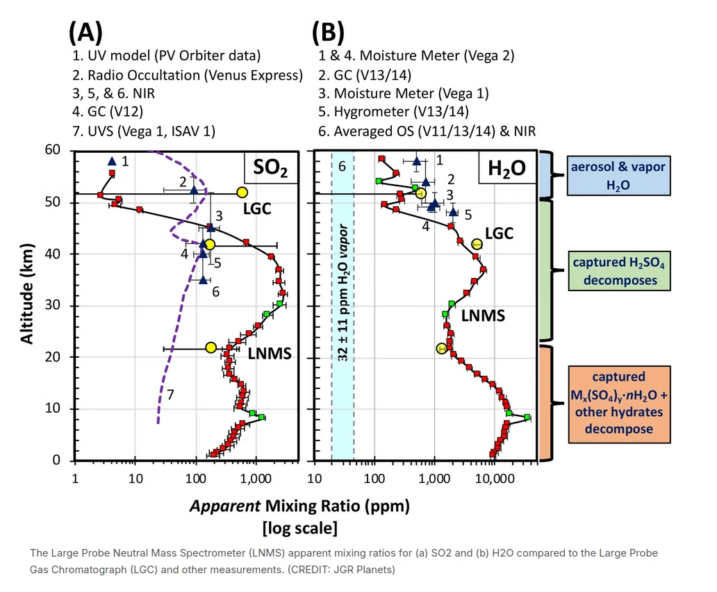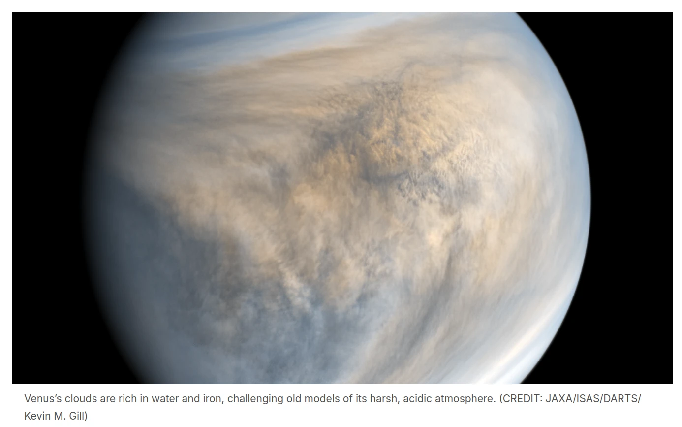 Scientist analyzing once again data from Pioneer mission come to conclusion that clouds of Venus are made mainly by water. The statement of the same analysis data 50 years back in time was saying that Venus clouds are made of sulfuric acid. 62 % of cloud structure is in fact a water the rest are iron and sulfuric acid. Water has been detected at altitude 50 KM.