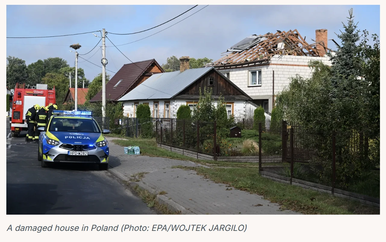 A missile fired from polish F-16 - AIM-120 AMRAAM hit house in Lublin region, Poland damaging a house. The polish F-16 were operating due to Russian drones intrusion into Polish air space.