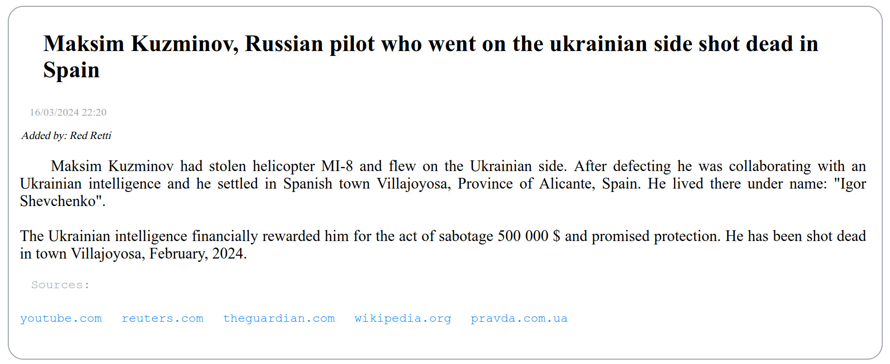 Ihor Hrushevskyi. 61 years old served in Ukraine as Interior Ministry's Department for Combating Organized Crime, and later in the National Police. He has been found dead in swimming pool. In Cala Alta apartment complex, exactly same location as Maksim Kuzminov has been shot dead, February 13, 2024.