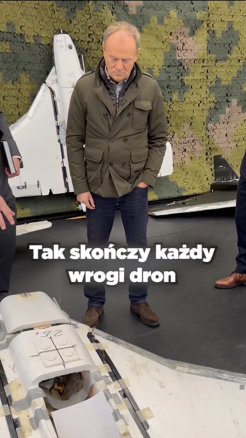 Polish prime minister Donald Tusk presents Russian drones which entered Polish airspace