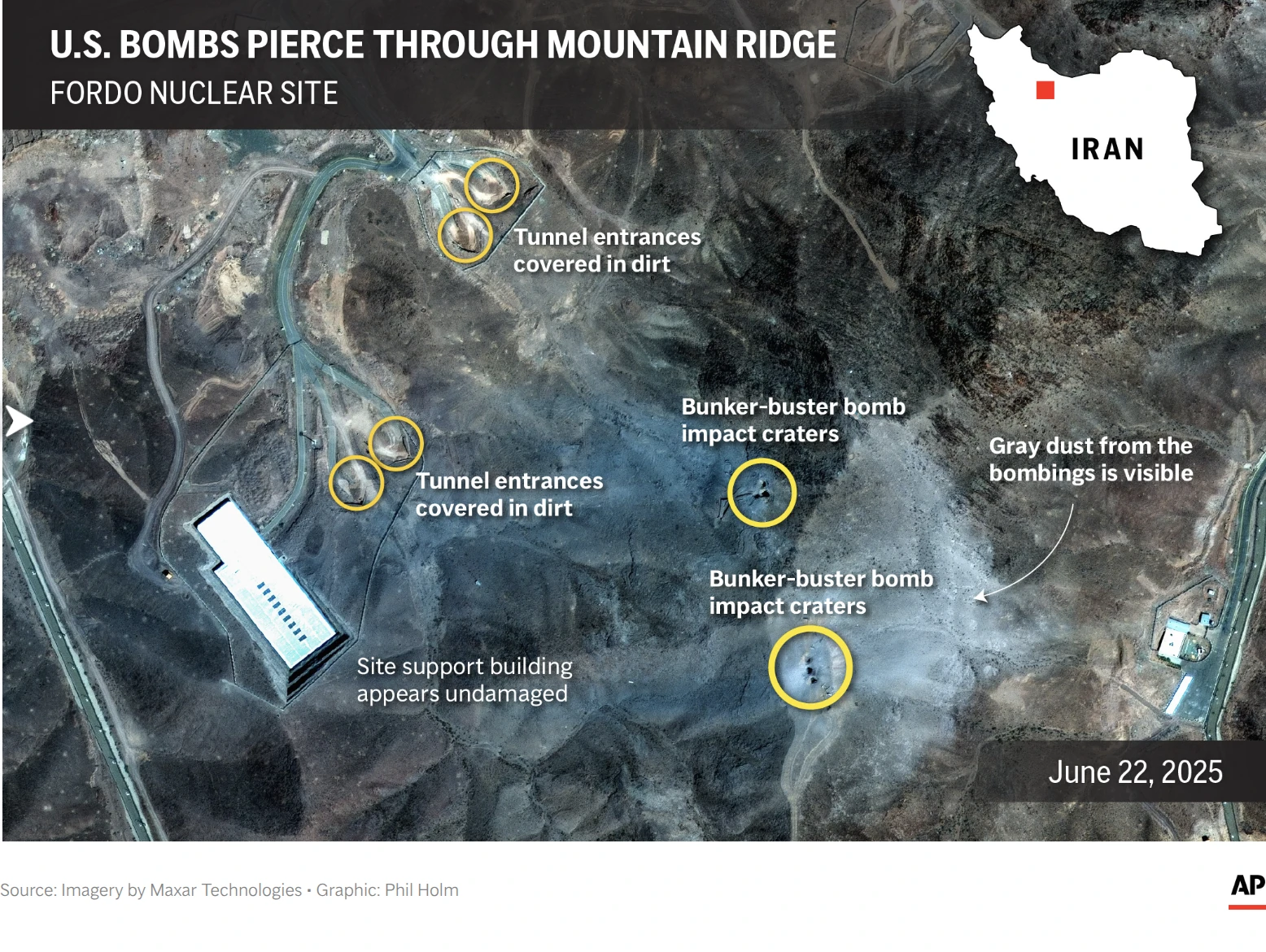 In total three locations has been attacked: Fordo, Natanz and Ishafan. Seven B-2 Bombers has been used for purpose of bombing in Iran. One of the B-2 dropped two GBU-57 in Fordo, Iran. Iran claims that all three sites has been evacuated long time before bombing and no significant damaged to the nuclear sites: Fordo, Natanz and Ishafan has been done. The bombing had a place on 22.06.2025 r.