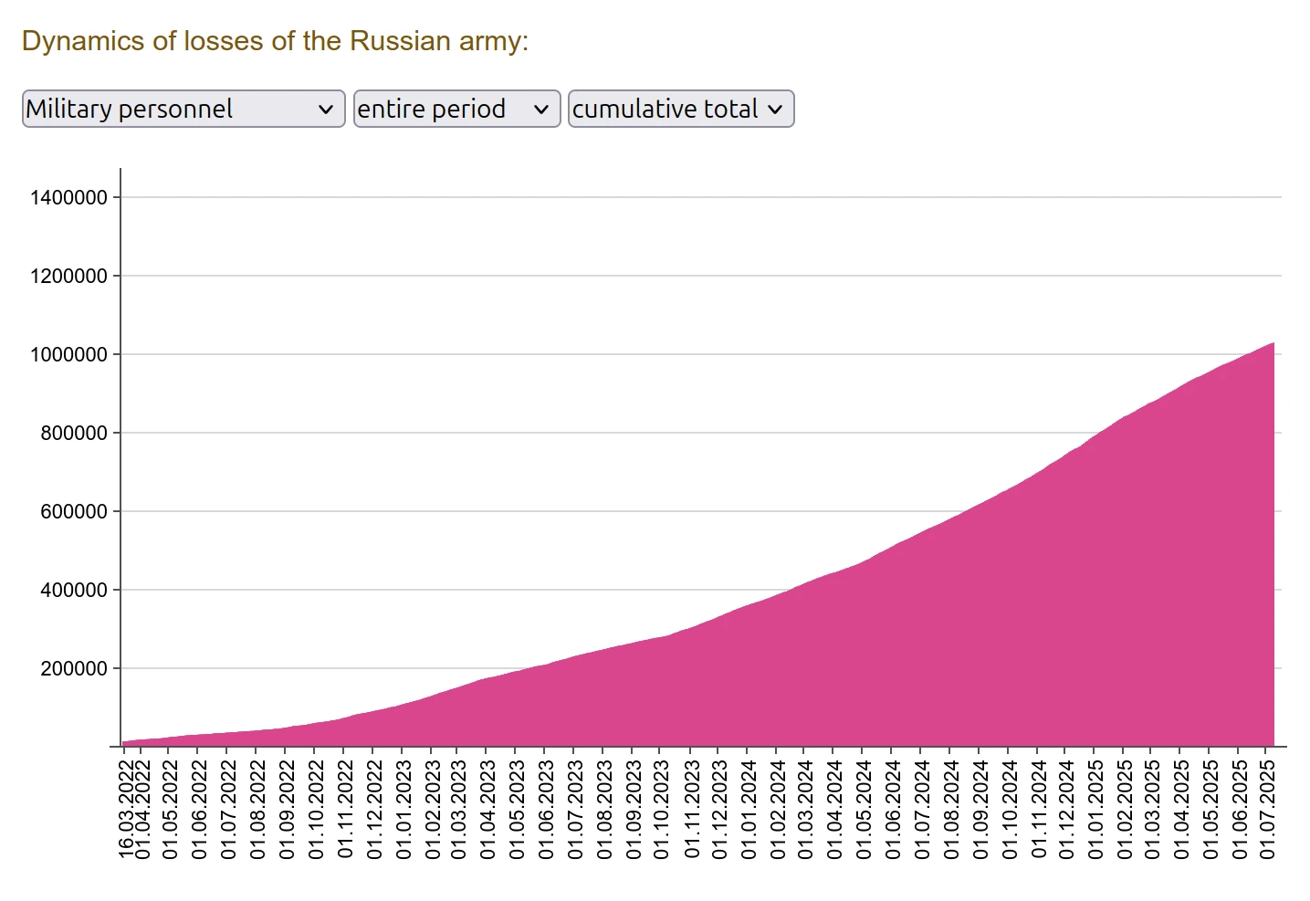 According to the most recent information, Russian Federation had lost more than 1 million people in ongoing war with Ukraine. More than 10 000 tanks and more than 400 planes. Exact numbers shows attached graphics. Despite heavy losses in heavy equipment Russian GDP grow 1.4% in recent months. The budget deficit grow too - up to 3.4 trillion rubles.