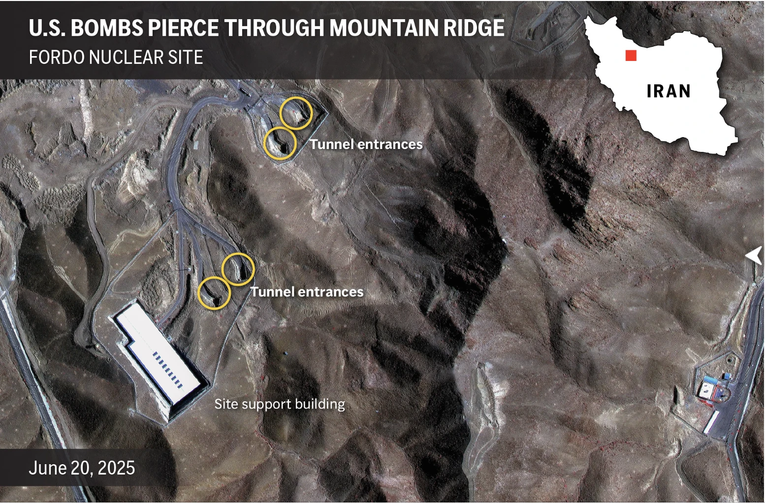 In total three locations has been attacked: Fordo, Natanz and Ishafan. Seven B-2 Bombers has been used for purpose of bombing in Iran. One of the B-2 dropped two GBU-57 in Fordo, Iran. Iran claims that all three sites has been evacuated long time before bombing and no significant damaged to the nuclear sites: Fordo, Natanz and Ishafan has been done. The bombing had a place on 22.06.2025 r.