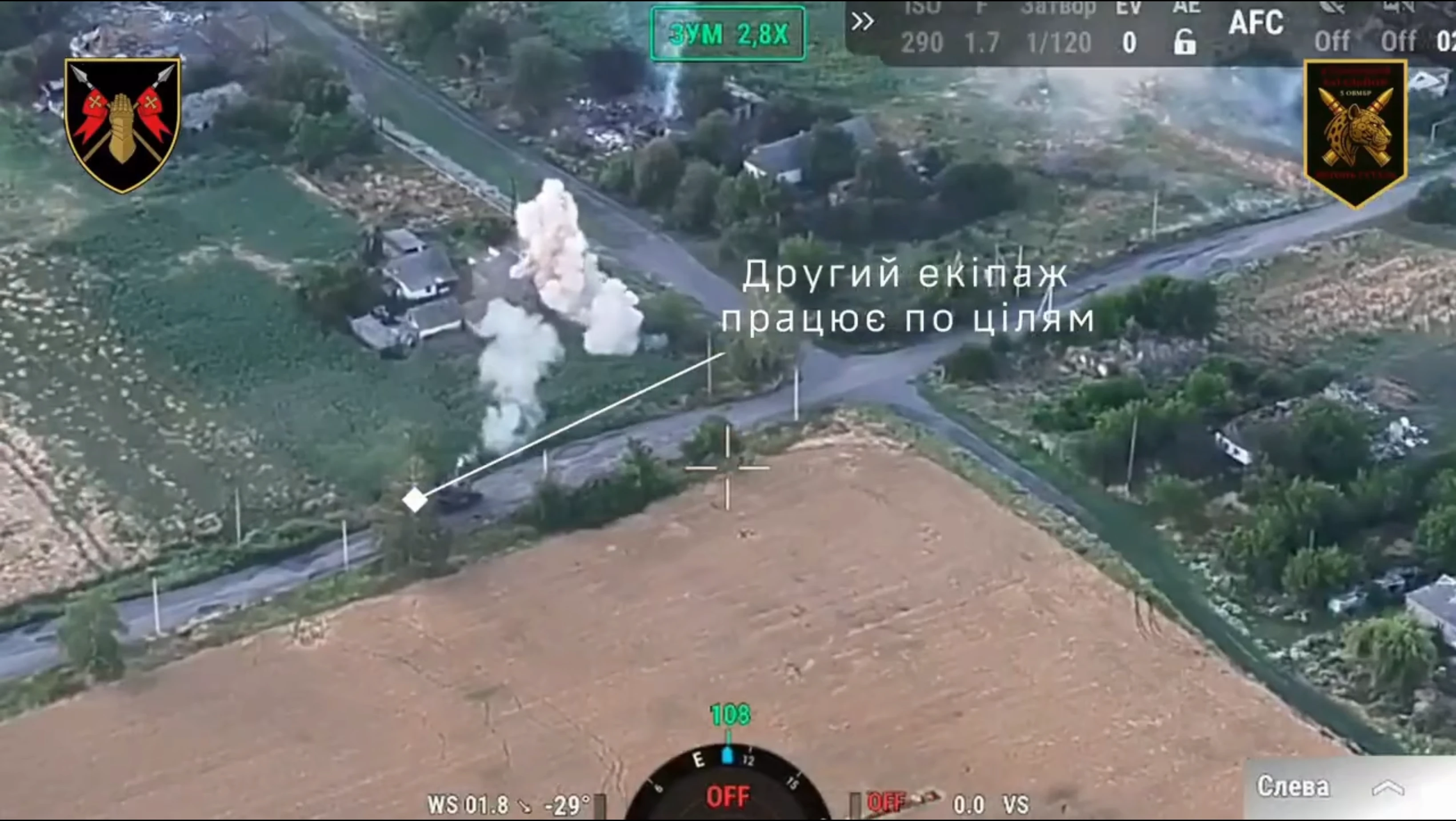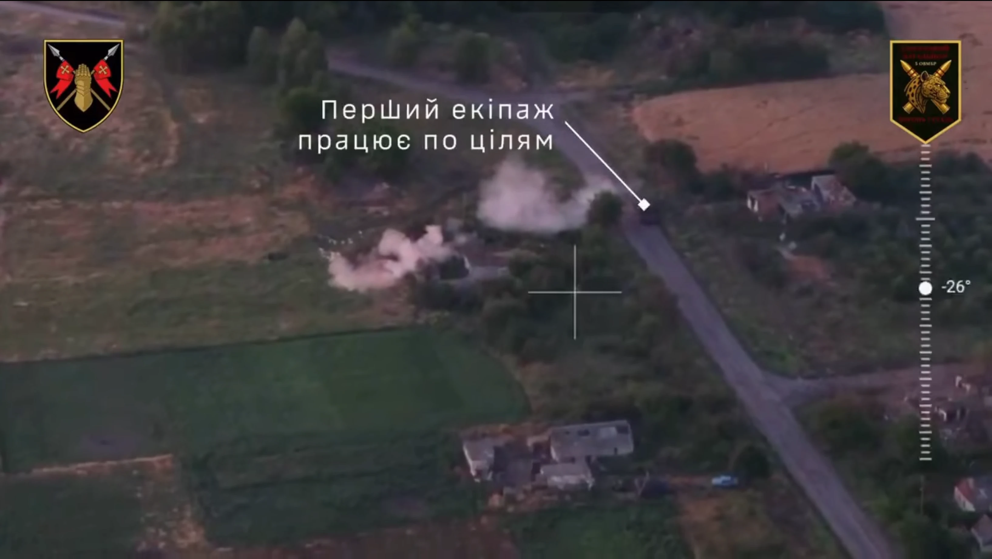 Footage's showing how two Ukrainian tanks attack on Russian positions – houses, where According to Ukrainian Ministry of Defense were hiding Russian infantry units. This Ukrainian assault has been performed in Pokrovsk direction. Ukrainian Mig-29 with 6 rockets installed under pylons during an air patrol mission. Strike on Russian “Tirada-2” electronic warfare system preformed with a drone. Compilation of strikes mainly on Russian tanks with a drones. This video shows attacks on “Turtle Tanks” – covered with, from every side except front with metal covers likewise tanks without that additional protection. On some of those tanks are sitting Russians which ones they see incoming drone, they try to evacuate from a tank tower.