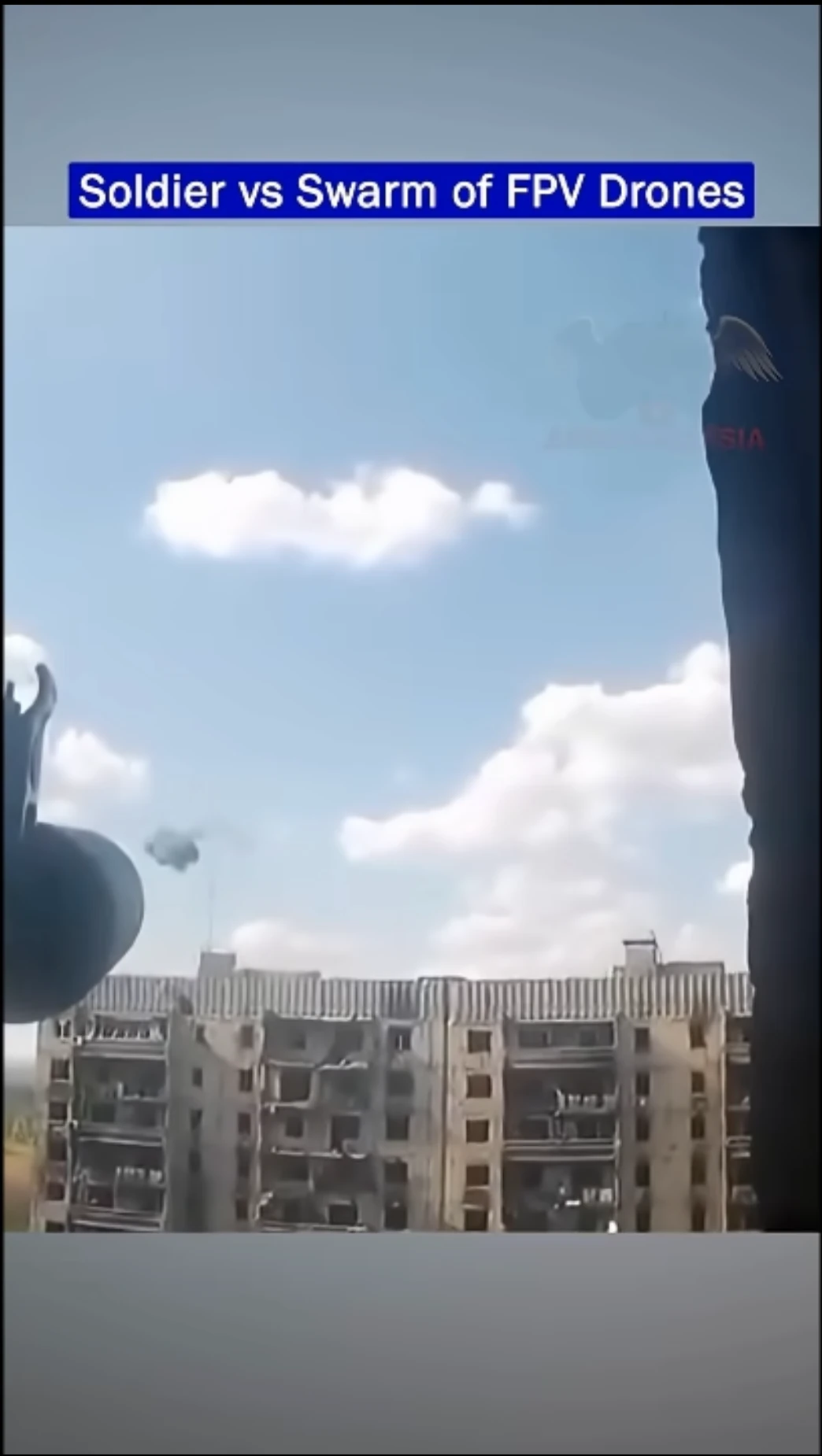 Russian drone strikes bulding, Russian soldier shots down drones